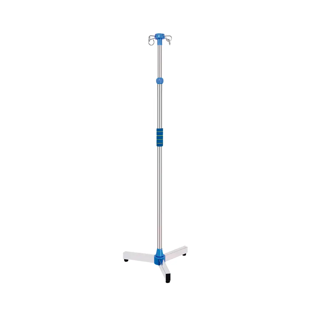 Porta suero de altura ajustable. Disponible con base con 3 o 5 ruedas.